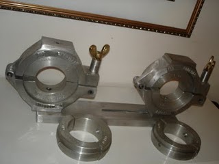 Este equipamento e usado no alinhamento das tubulações no ato da soldas , podendo usar Alinhadores tipo reto ou angular como mostra a foto , o alinhador angular, possibilita a solda em tubulação em 45º e 90º , quando e necessário a utilização de Curva eletrosoldavel ou temofusão , este equipamento permite uma solda alinhada com bom acabamento , nesta fabricação , o clente pode optar pelas medidas , o equipamento e composto de casquilho , podendo usar varias medidas de tubos em um so equipamento.